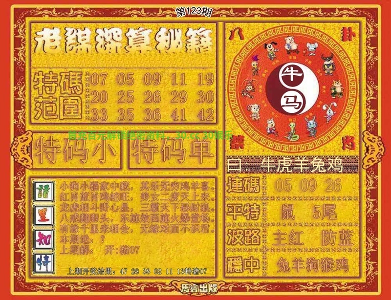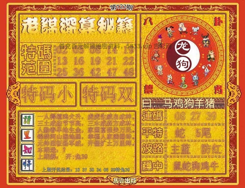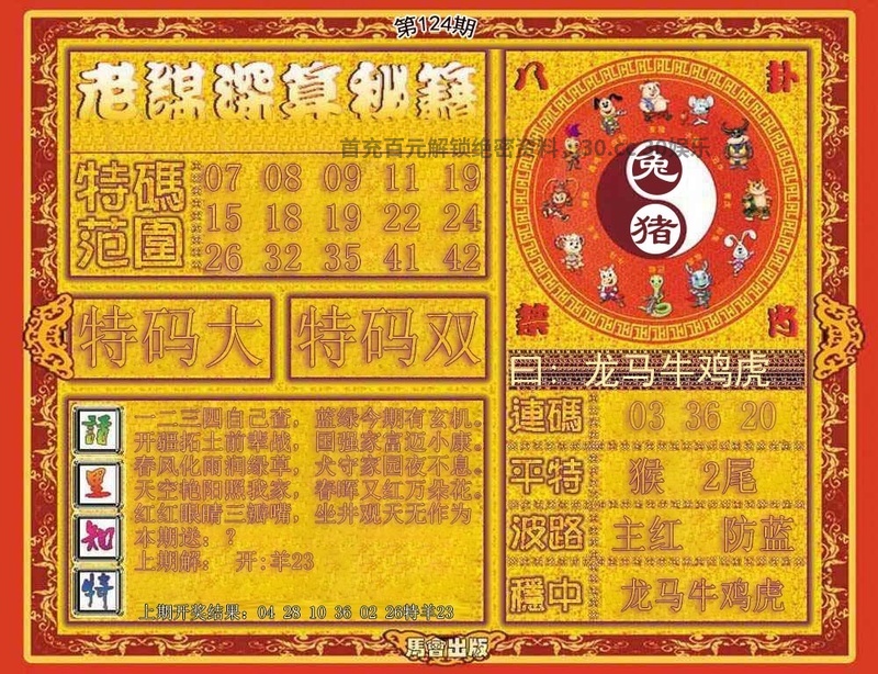 128期:密门仙机/心水特码信/黄大仙天书/波色生肖诗/生肖歇后语